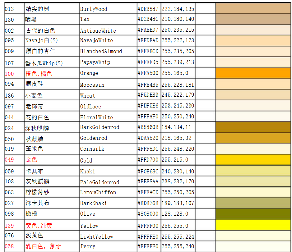 RAL系列提供了多種顏色的命名和對應的RAL編號,如RAL 1000米綠色(RAL 1000),RAL 1004金黃色(RAL 1004)等。