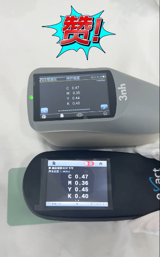 使用愛色麗進口密度儀進行同樣的測量。愛色麗進口密度儀是業界公認的高品質密度儀,其精確度和穩定性都非常出色。在輕輕按壓被測材料后,儀器顯示CMYK值。這些數值與CMIKZ值類似,但具有更高的精度和可靠性。