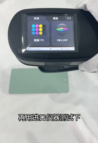 使用三恩時國產密度儀進行測量。按下測量按鍵后,儀器顯示CMIKZ值。這些數值反映了被測材料的顏色特性和密度。