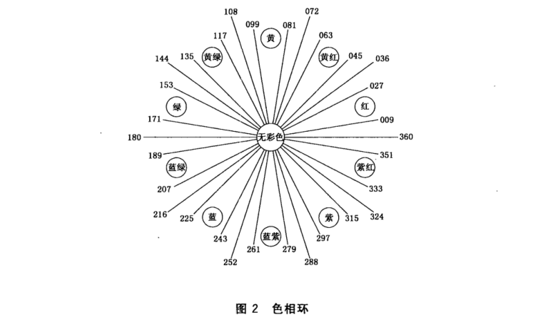 色相分成360個,標號范圍為001~360。色相由10個顏色組成,見圖2。
