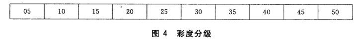 彩度標號從05~50十等分延色相環由內向外依次遞增,彩度分級見圖4。彩度小于05的極低彩度用00表示。