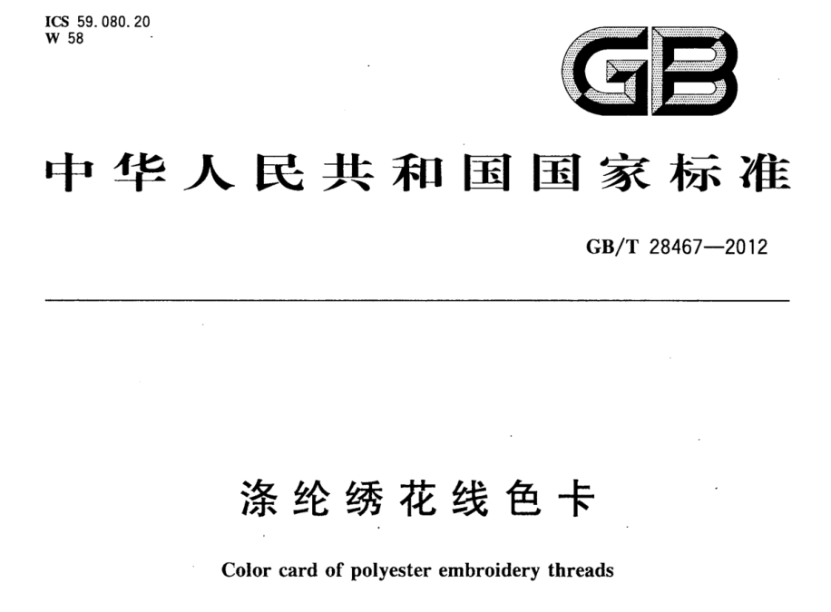 滌綸繡花線色卡顏色標號對應的Lab標準色度值見附錄A。注:Lab色度值定義見GB/T 5698。