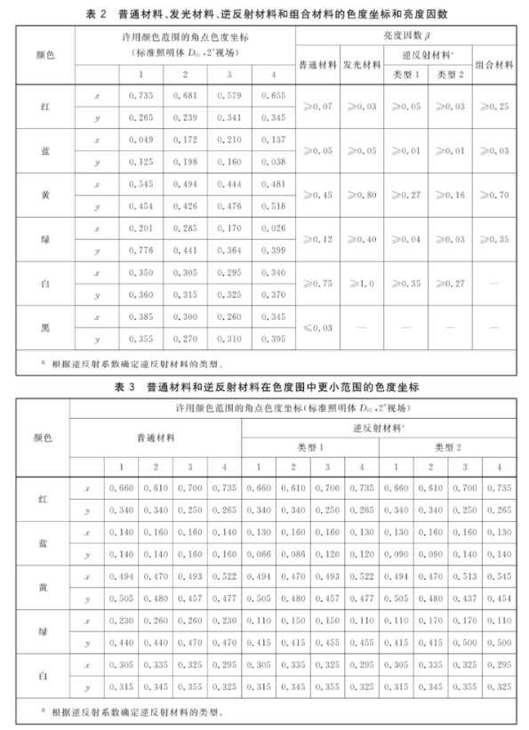滿足精確顏色要求的安全色色度范圍應符合表3的要求,磷光色的對比色和亮度因數應如圖1和表4所示。