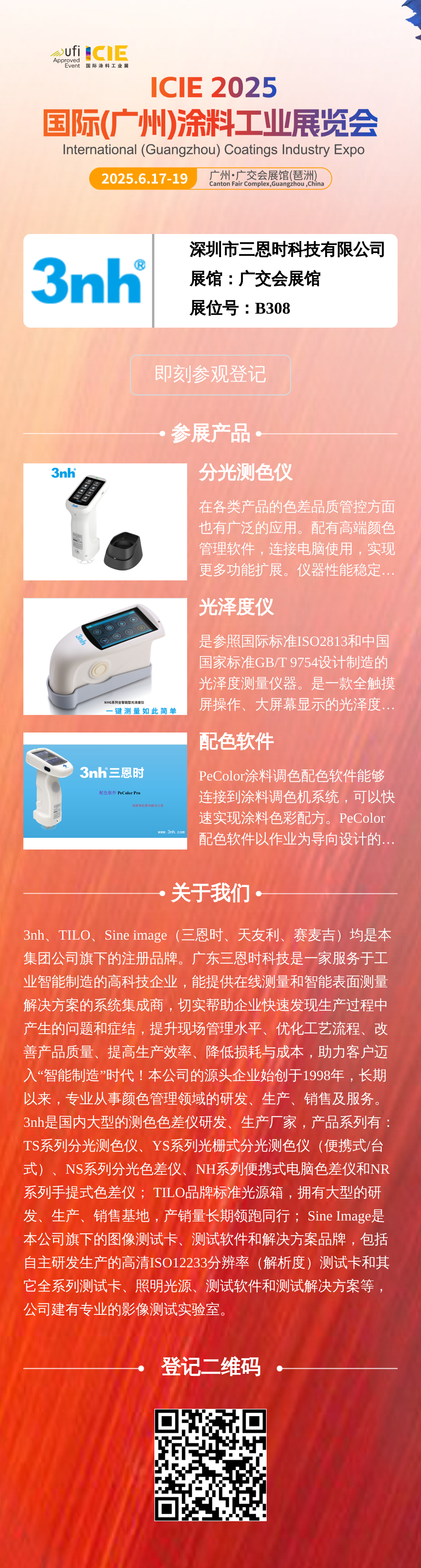 2025 年 6 月 17 日 - 19 日,ICIE2025 國際(廣州)涂料工業展覽會將在廣州廣交會展館盛大舉辦。三恩時科技誠邀您蒞臨 B 區 B308 展位,共同探索涂料行業色彩解決方案,共話產業新機遇!