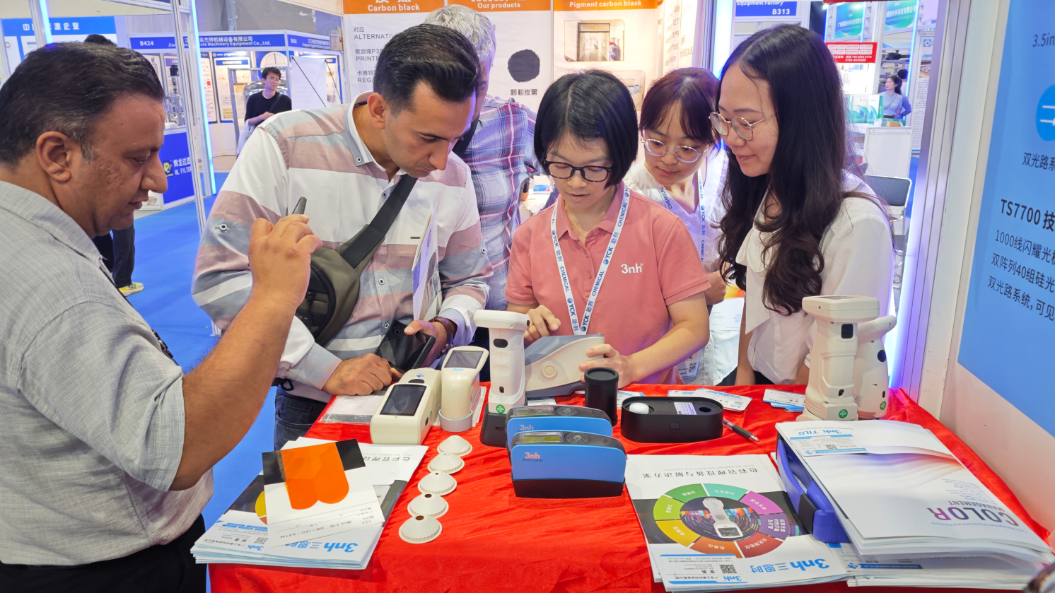 在眾多展臺中,三恩時憑借其高精度測色儀+智能配色軟件的“王炸組合”,成為全場焦點!