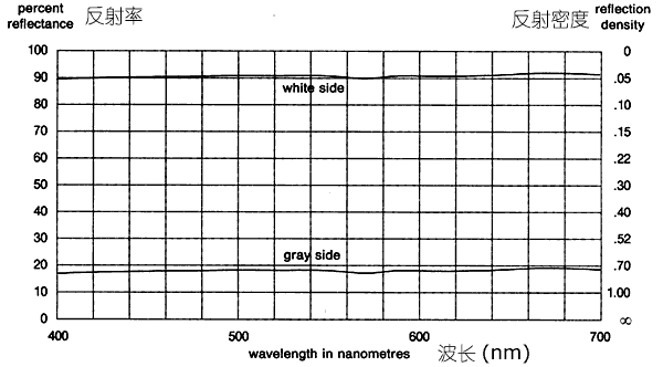 圖4表示了柯達灰卡的白色面和灰色面在可見光范圍的反射率曲線。